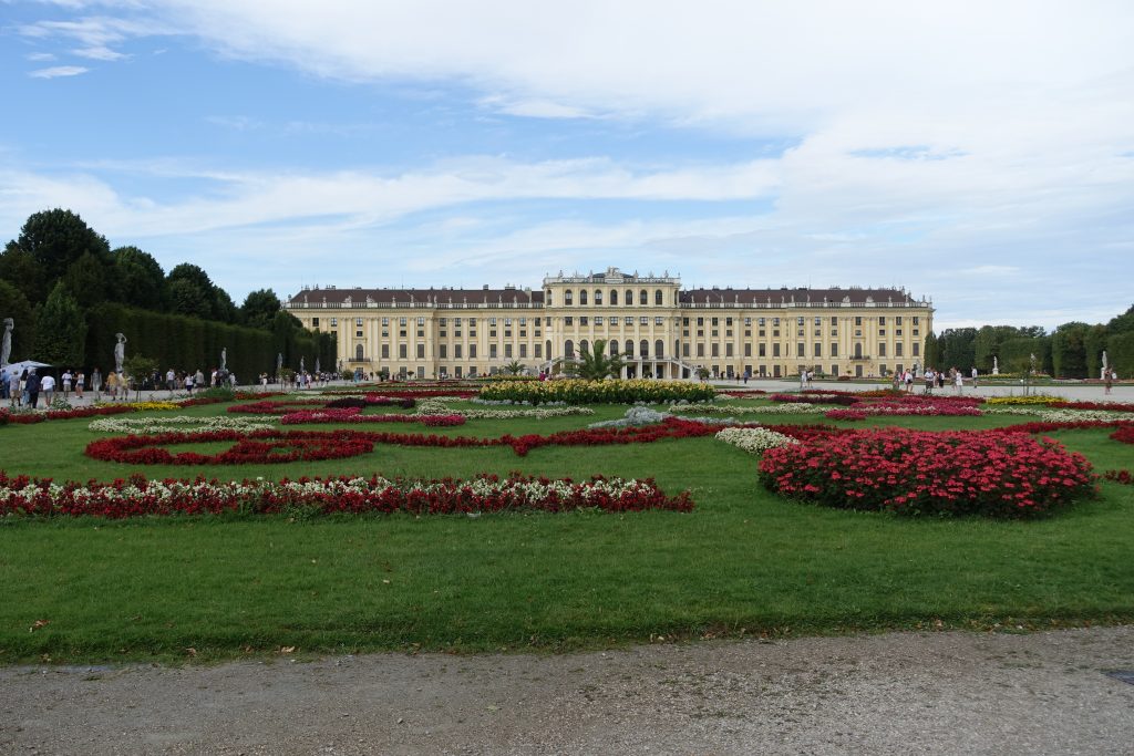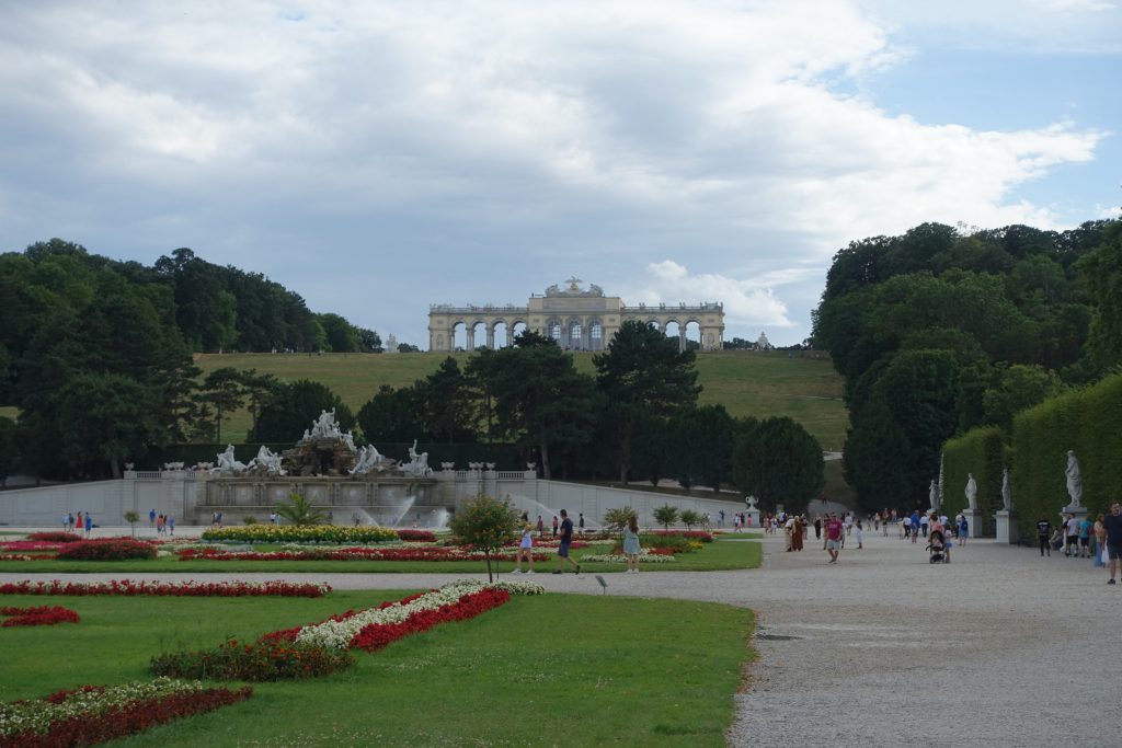 Vom Hauptbahnhof Wien ging es mit der U-Bahn zum Hotel im Stadtteil Schönbrunn. Nach einer kurzen Pause ging es zur ersten Sehenswürdigkeit – Schloss Schönbrunn. Allerdings darf man den Fußmarsch zum Schloss nicht unterschätzen. Man muss erst einmal 10 Minuten durch den riesigen Schlosspark laufen (da muss man aufpassen, dass man sich nicht verläuft), aber es lohnt sich. Denn auch der Park ist wunderschön. Überall Alleen und schöne bepflanzte Wiesen. Wenn man das Schloss gefunden hat, hat man gleich mehrere Sehenswürdigkeiten. Auf der einen Seite das Schloss Schönbrunn und auf der anderen Seite den Neptunbrunnen. Im Park selbst befinden sich weitere Sehenswürdigkeiten, z. B. das Palmenhaus oder ein Irrgarten.