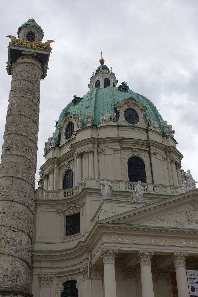 Am nächsten Tag bin ich früh aufgebrochen, um den ganzen Tag zu nutzen, Wien zu erkunden. Dank der App – ivie – Wien City Guide konnte ich perfekt Wien entdecken. Eine U-Bahnstation hatte mehrere Ausgänge, da musste man wirklich aufpassen, dass man auch den richtigen nimmt. So konnte ich gleich zwei Sehenswürdigkeiten besuchen, ohne mit der U-Bahn oder mit der Straßenbahn fahren zu müssen. Denn die Karlskirche und die Wiener Secession befinden sich beide in der Nähe der U-Bahnstation. Nur muss man zwei verschiedene Ausgänge nehmen. Von der Karlskirche ging es in die Innenstadt.